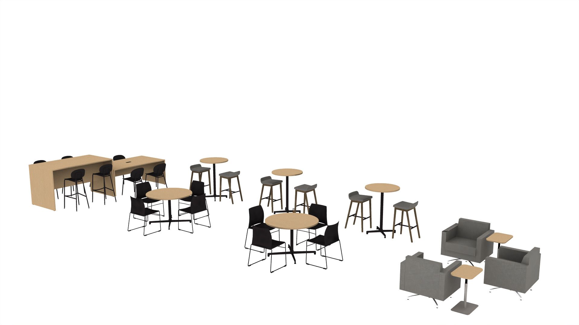 Seated and bar height round tables are now available on Quickship to complement ancillary, social and dining environments.